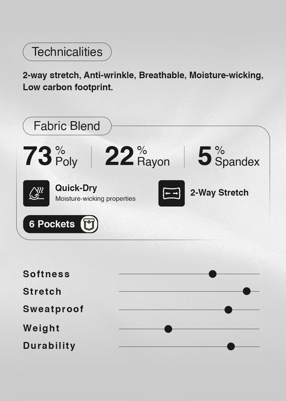 β€’ Lightweight and wrinkle-resistant